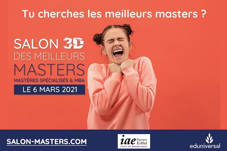 Nos étudiants et nos responsables de formation vous donnent rendez-vous le 6 mars 2021 au Salon 3D des Meilleurs Masters Eduniversal pour vous faire découvrir les Meillieurs Masters de l’ IAE Gustave Eiffel et échanger autour des métiers et des débouchés des formations !